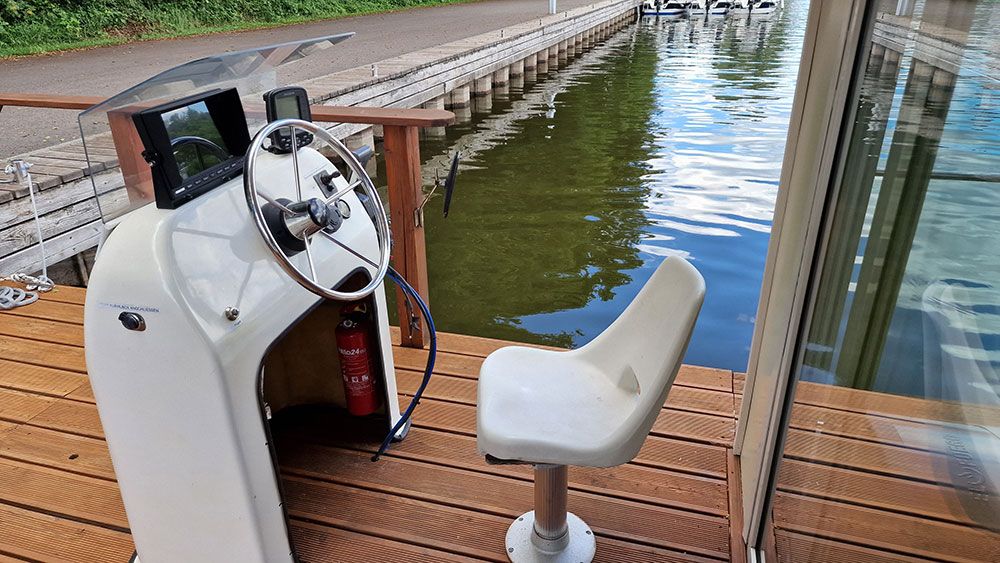 Setze die Segel und genieße die Sonne auf der geräumigen Terrasse. Hier kannst du dich entspannen und den malerischen Flussblick in vollen Zügen genießen. Der Führerstand befindet sich im Freien, sodass du das Gefühl hast, eins mit der Natur zu sein. Und für eine mühelose Navigation verfügt die Bounty über eine Rückfahrkamera sowie seitliche Kameras.