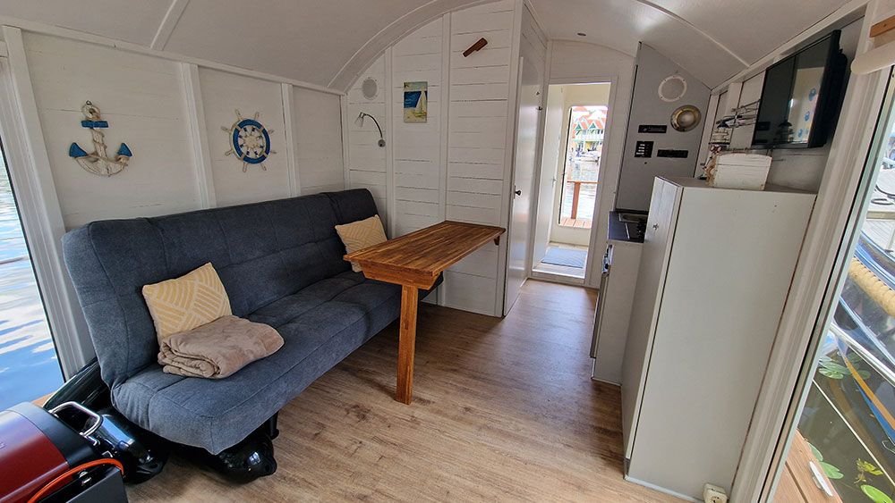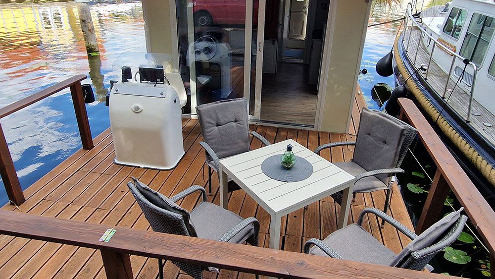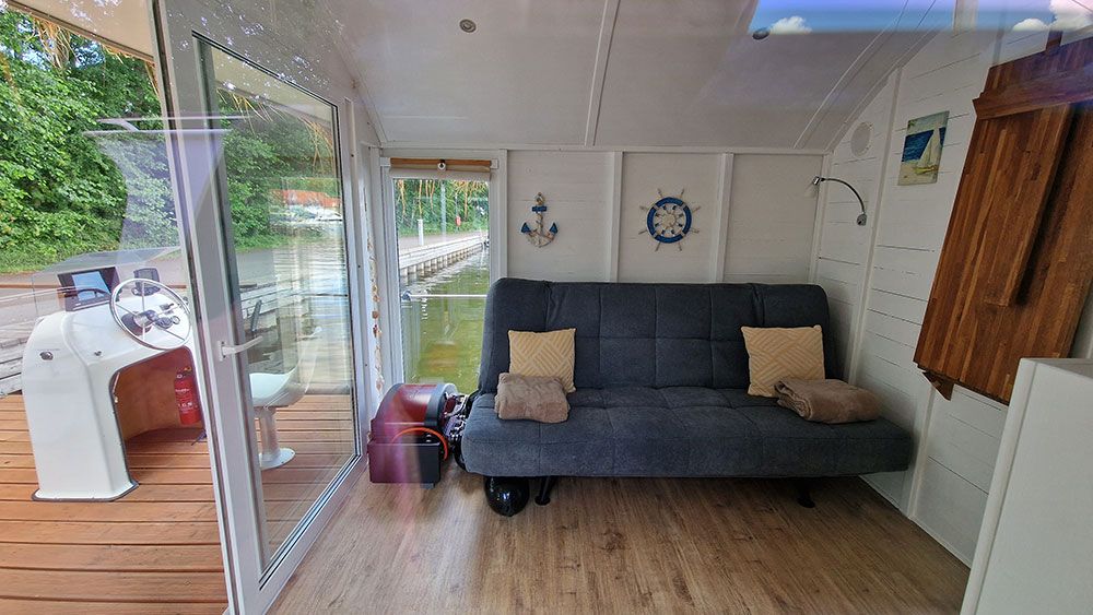 Bootsferien auf diesem einzigartigen Hausboot – Entspannung und Erlebnis, Natur pur und Großstadtflair. Auf einem Boot und doch so komfortabel und gemütlich wie zu Haus. Auf dem Hausboot können bis zu 4 Personen unterkommen: es gibt eine Schlafkabine mit Doppelbett 140×200 und zusätzlich ein Schlafsofa 120 x 200 im Wohnbereich.